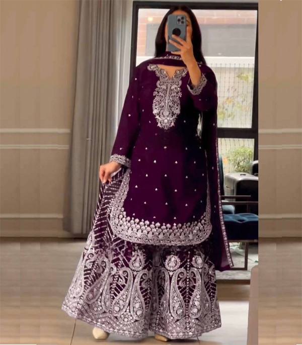 Readymade Gharara Dress (Merun)