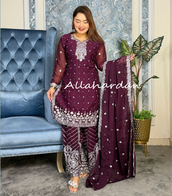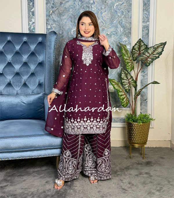 Readymade Gharara Dress (Merun)