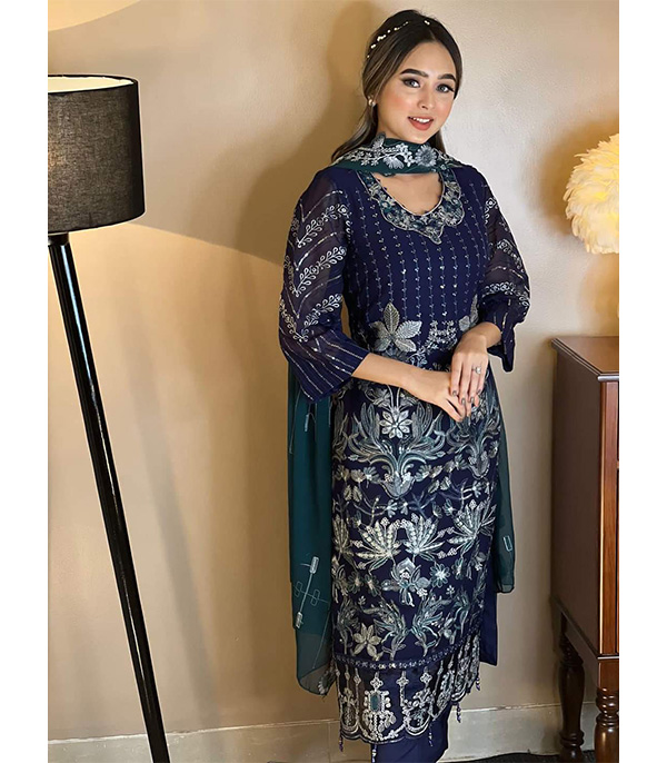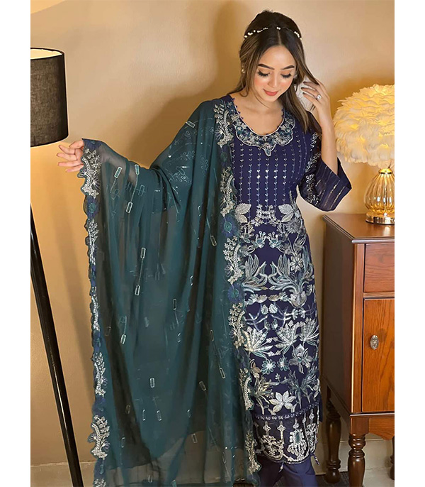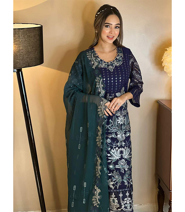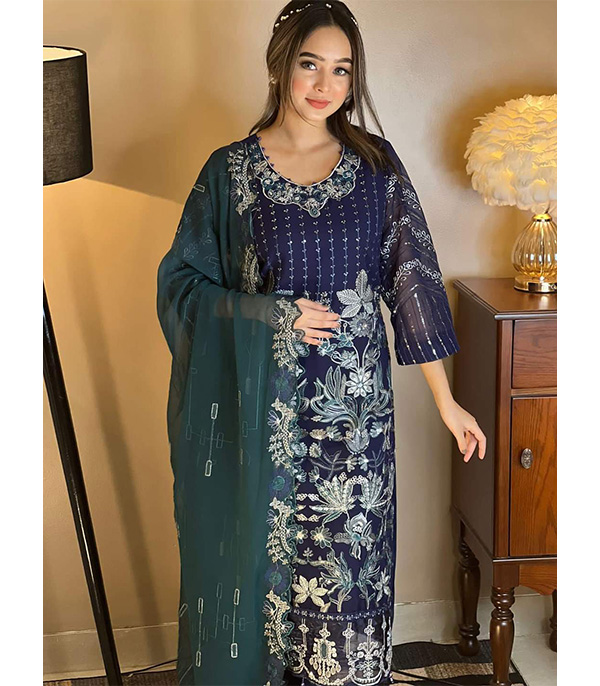 Unstitched Salwar Kameez (Old See Blue Rub)